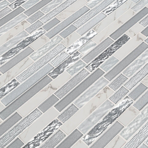 Whistler Ice Interlocking 12 in. x 12 in. Glass Porcelain Blend Mosaic Wall Tile